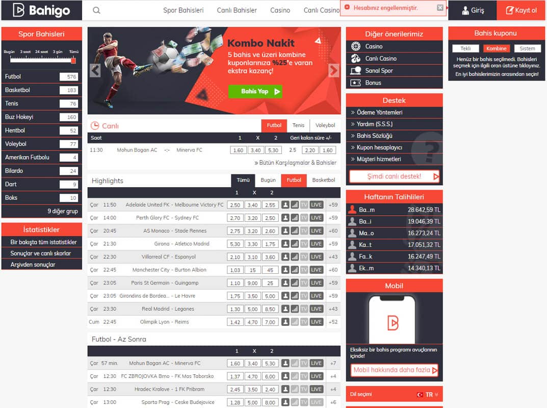 Bahigo size bir çok bahis imkanı sunar.