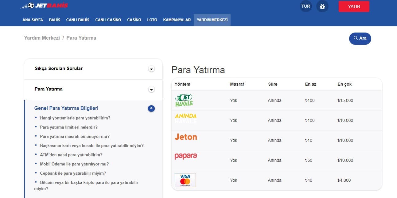 Jetbahis para yatırma seçenekleri şunlardır;