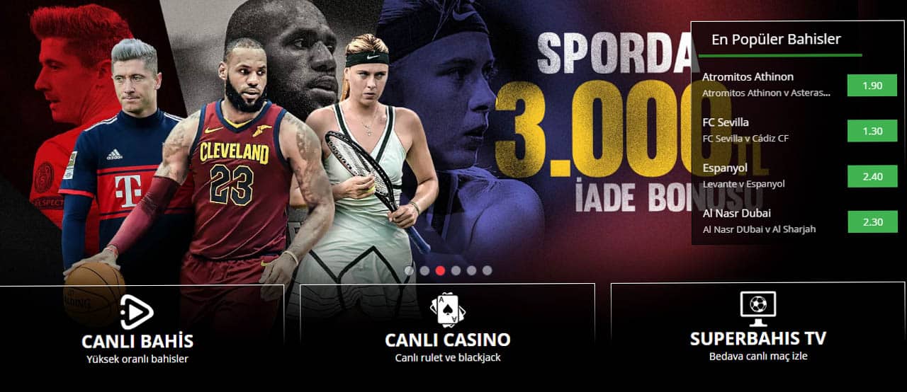Sizler de internet üzerinden canlı bahis seçeneklerine ve casino oyunlarına göz atmak isterseniz kesinlikle Süperbahis altyapısına kayıt olmalısınız. Kayıt işleminizi bitirdikten hemen sonra mail adresinize gelen aktivasyon mailini açın ve üyeliğinizi onaylayın. Üyeliğiniz onaylandıktan sonra siteye giriş yapın, paranızı yatırın ve çeşitli bonuslarla beraber kazanma şansınızı daha yüksek seviyelere çıkarın.